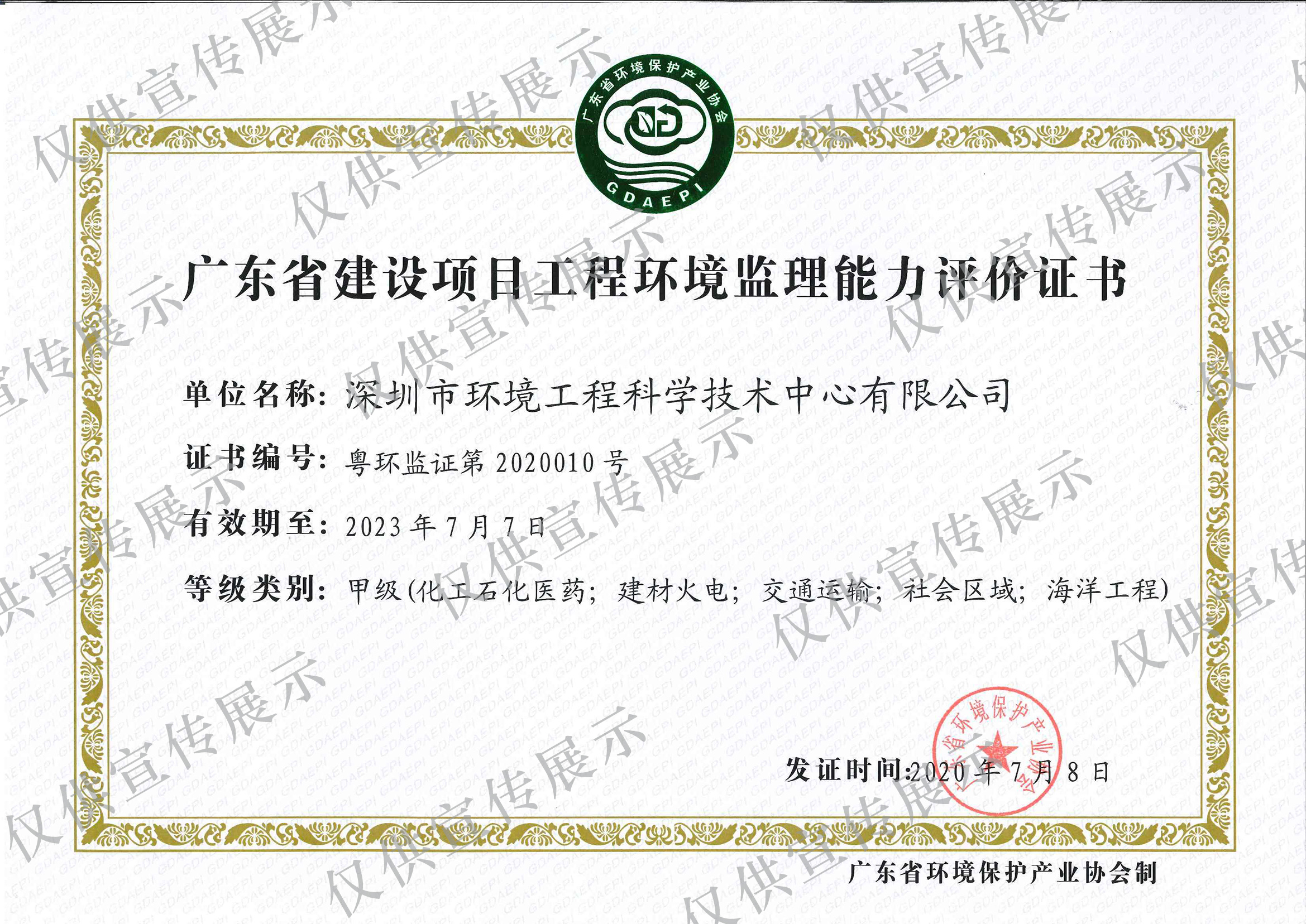 • 廣東省建設項目工程環境監理能力評價證書